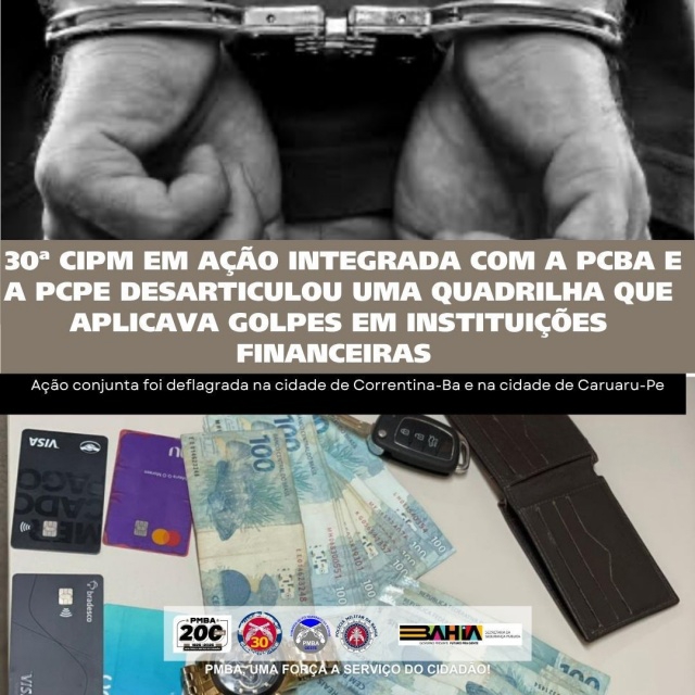 CORRENTINA: 30ª CIPM DESARTICULA QUADRILHA QUE ATUAVA NA BAHIA E EM PERNAMBUCO APLICANDO GOLPES EM INSTITUIÇÕES FINANCEIRAS